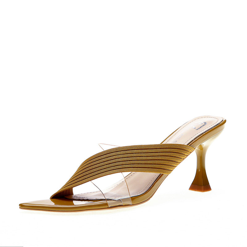 Transparent high-heeled sandals and slippers women's 2022 summer new lazy outer wear fashion thin-heeled all-match open-toe fairy-style sandals