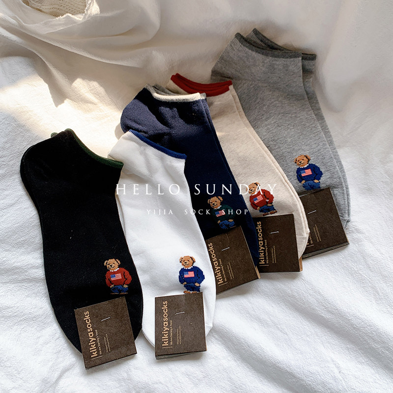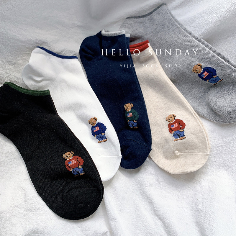A sock shop men cute bear socks pure cotton suction sweating and combed cotton and Korean version of low-gang comfort Han version of summer thin