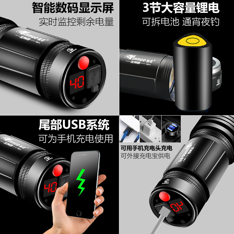 Jetro Night Fishing Light Fishing Light Purple Light Bench Fishing Super Bright Light High Power Blue Light Flashlight Xenon Luminous Wild Fishing
