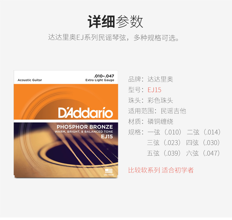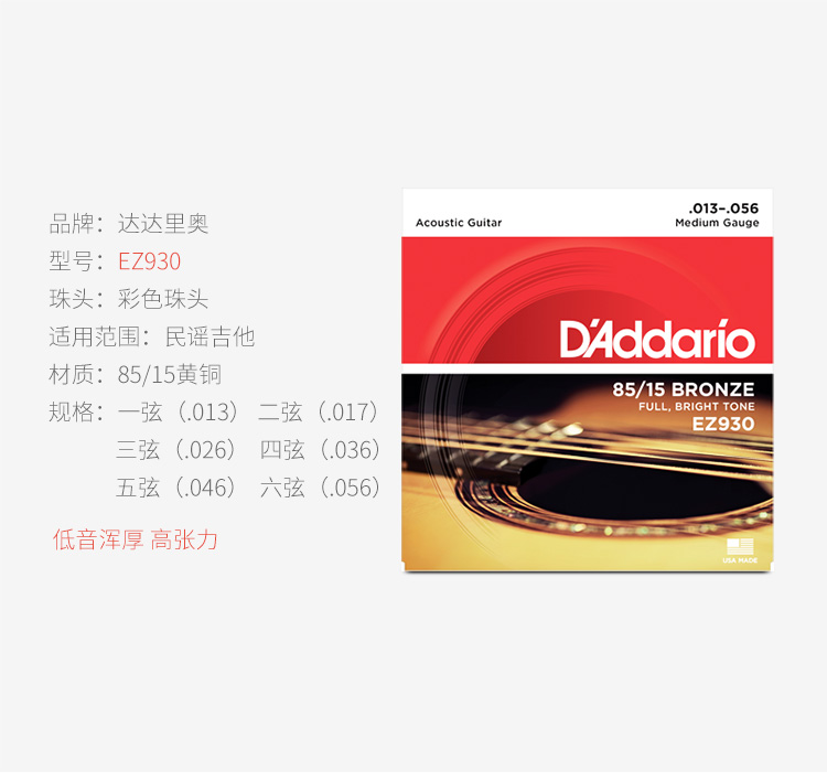 Dadario guitar string set of 6 universal folk song string wooden string anti-rust phosphor copper EZ910 EJ16