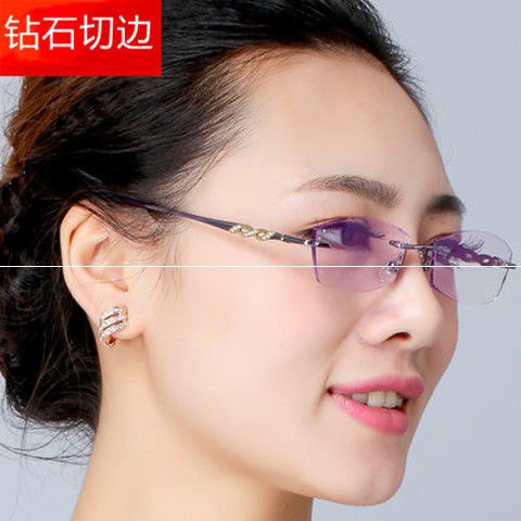 No degree ladies elegant anti-blue light with myopia presbyopia glasses high-definition rimless edge anti-radiation old glasses