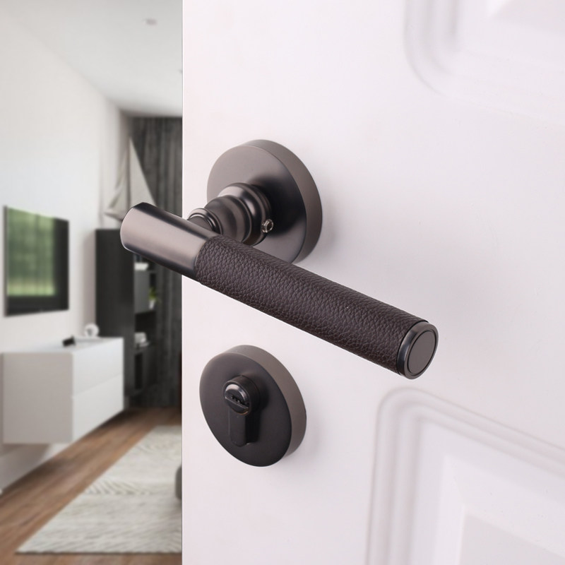 Taiwan Yithyme genuine leather door lock Indoor silent room door lock Gray black American minimalist leather bedroom door handle