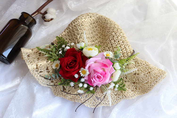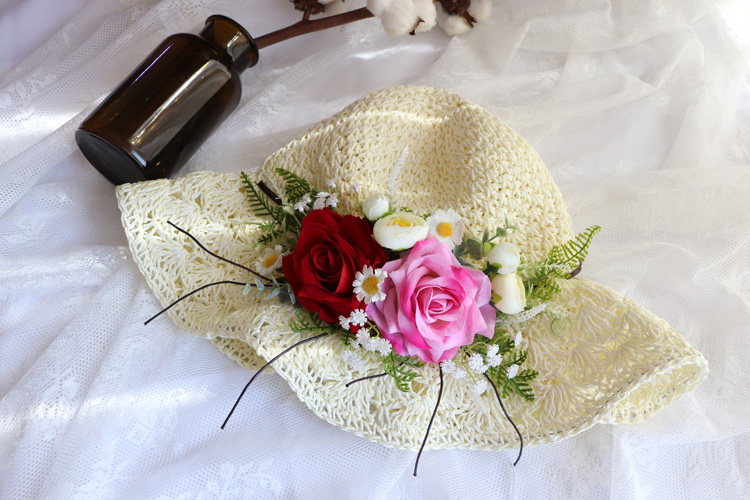 Handmade flowers weaving straw hats female summer Xiaoqing Renaissance Art Tour Showa Beach folding large hat cap