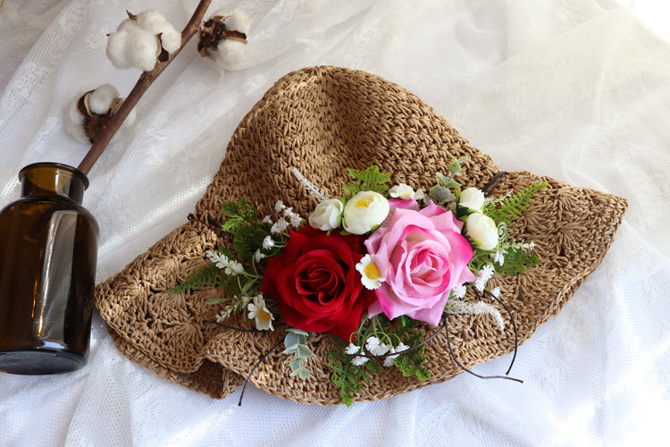 Great white rose straw hat beige large rose straw hat dark cafe big rose straw hat