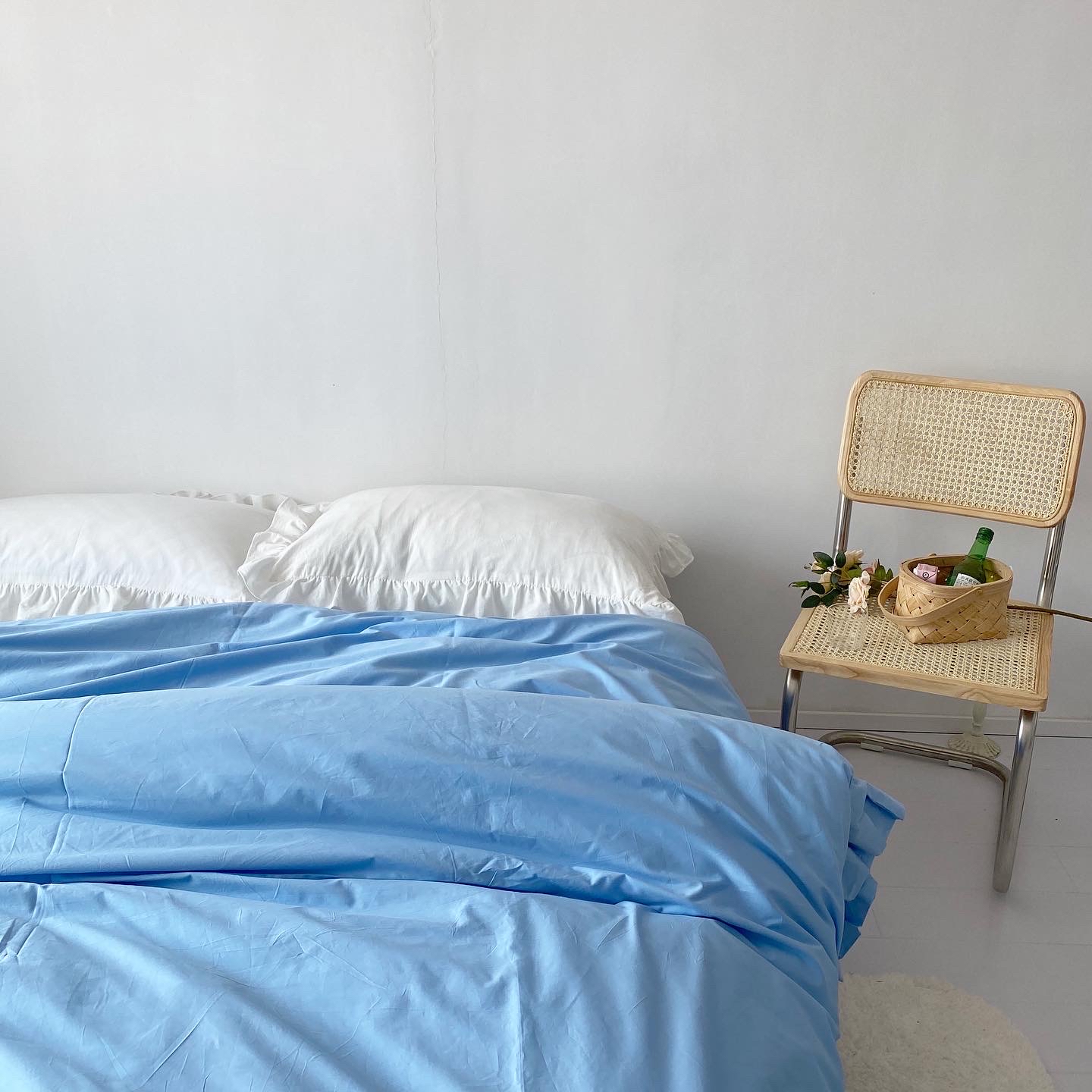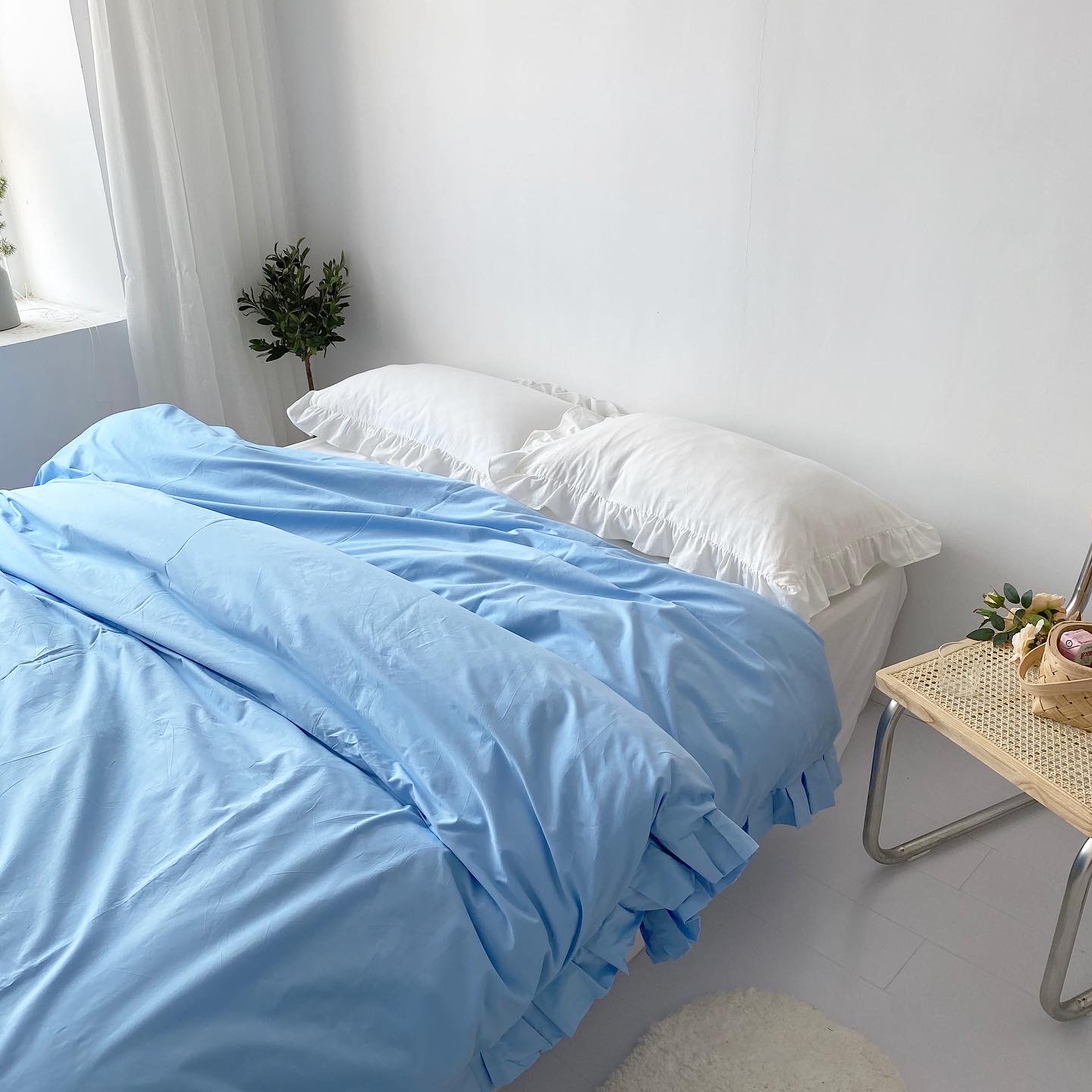 South Korean ins blogger gentle and versatile baby blue single-piece cotton quilt cover quilt cover mattress cover custom cute solid color