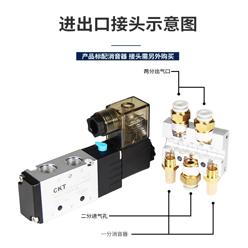 Sikdi Pneumatic 4V210-08 Two-position five-pass electromagnetic control of the Yadh passenger type solenoid valve 12v 24v 220v