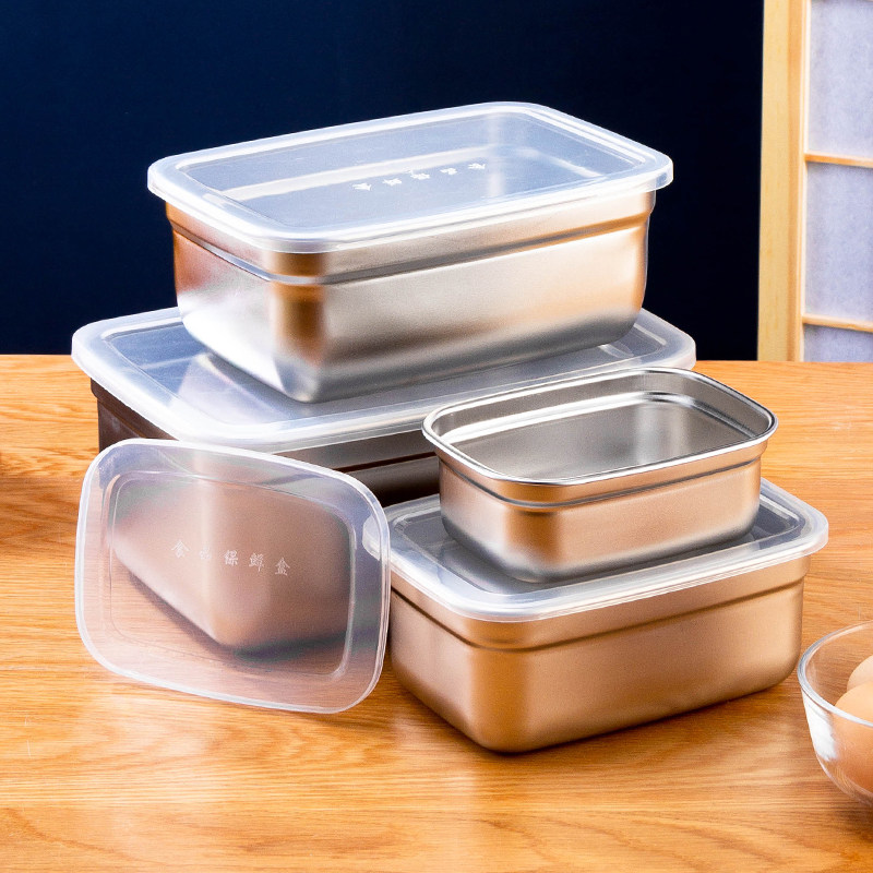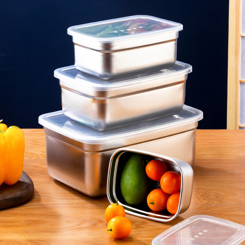Stainless steel 304 fruit fresh-keeping box with cover food-grade food storage box rectangular refrigerator special freezer