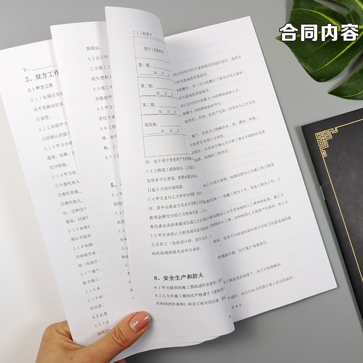 Black high-grade coated paper contract 10 sets of blue leather texture paper decoration contract 10 sets of red 8P decoration contracts 10 sets of white commonly used double-adhesive paper contracts 10 sets of decoration contracts custom shooting agreed total
