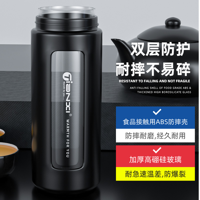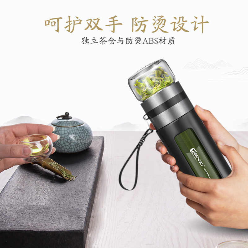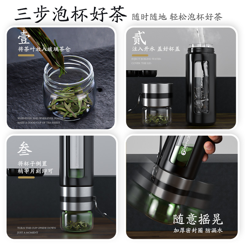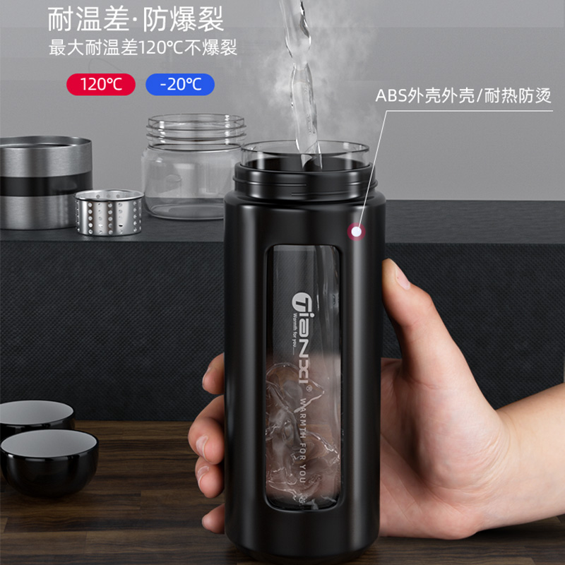 Tea Water Separation of tea cup Double heat insulation portable glass cups Home men and women Water glass minimalist frescoed glasses