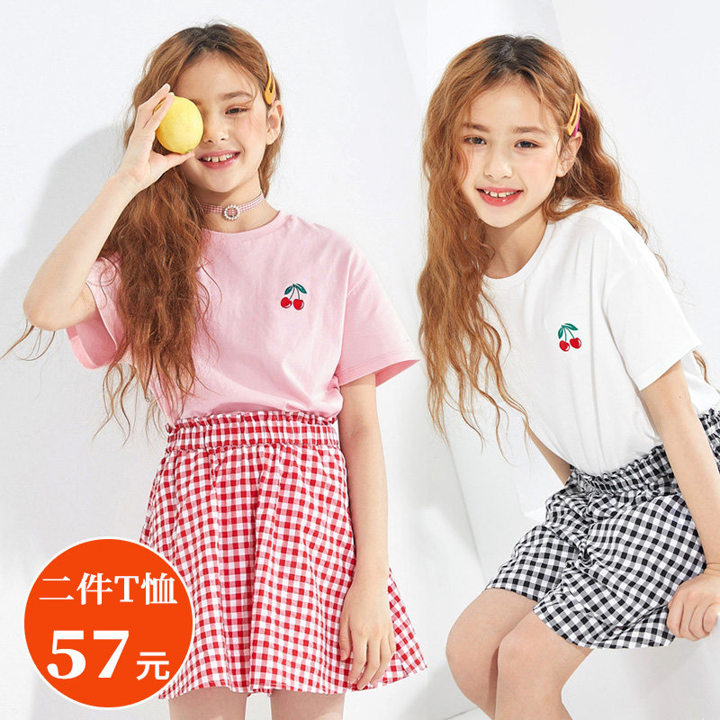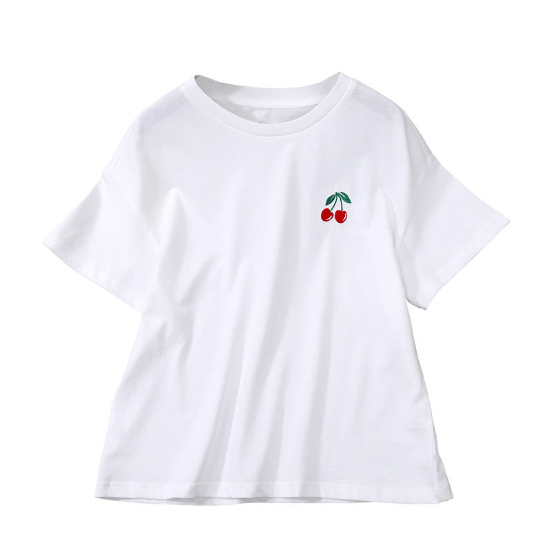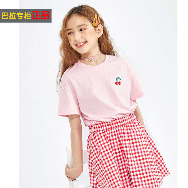 Barra Childhood Girls Short-sleeved T-shirt Big Kids Cotton T-shirt Children's Cherry Extravagant Top Loose Summer Dress
