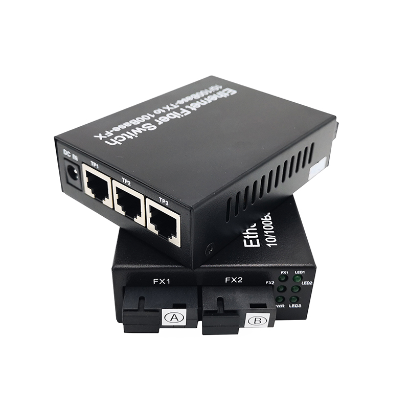 100 trillion 2 light 3 electric mini fiber transceiver double optical port cascade connected photoelectric converter to support DC5-16 volt