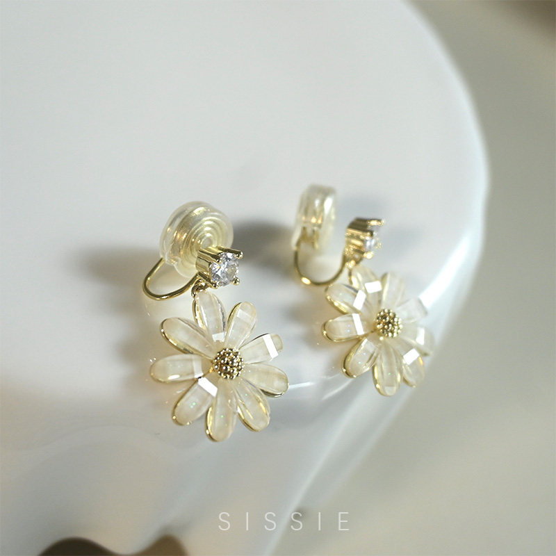 Acrylic flowers for round face painless high-sensitivity French ear-clamp female ear holes without headbar