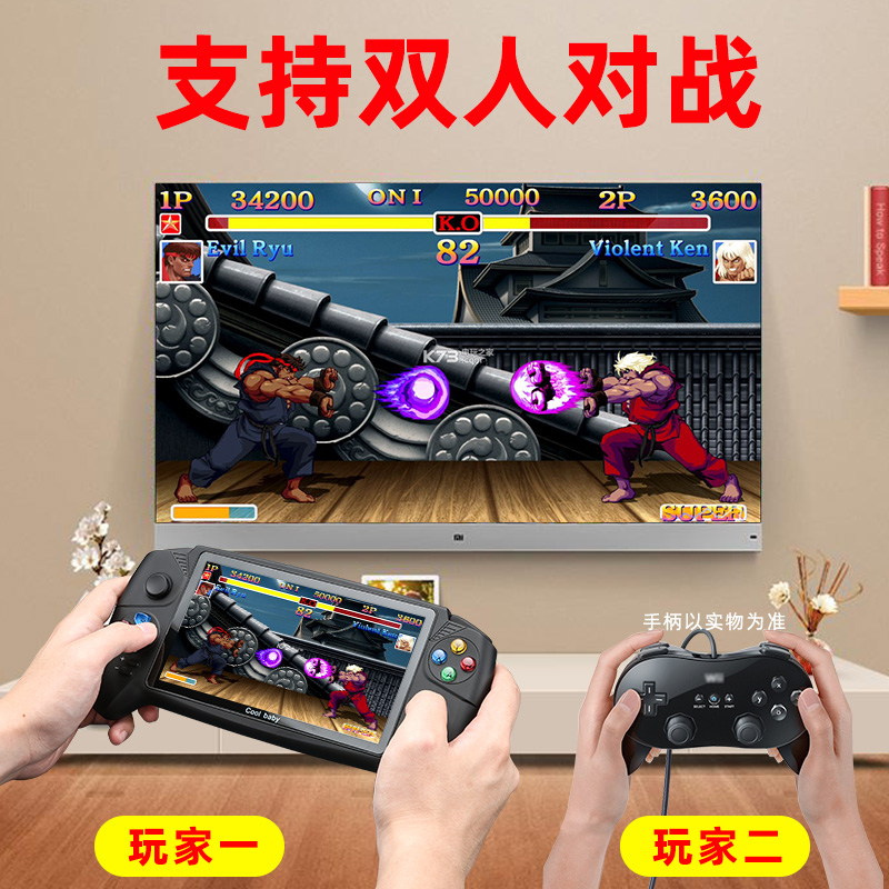 (7 inch large screen) Electronic toy Puzzle Multifunction Console Palm Machine Nostalgic Palm TV Double Street Machine