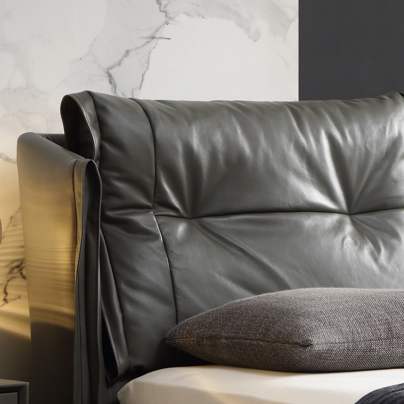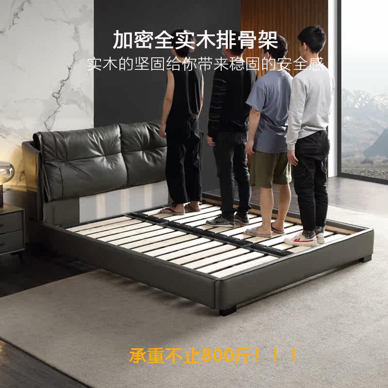 Nappa genuine leather bed (down bag) (full solid wood) thickened organic cotton latex mattress head layer genuine leather bed (down bag) (full solid wood) CD656 environmentally friendly brown dual-use mattress Napa genuine leather bed