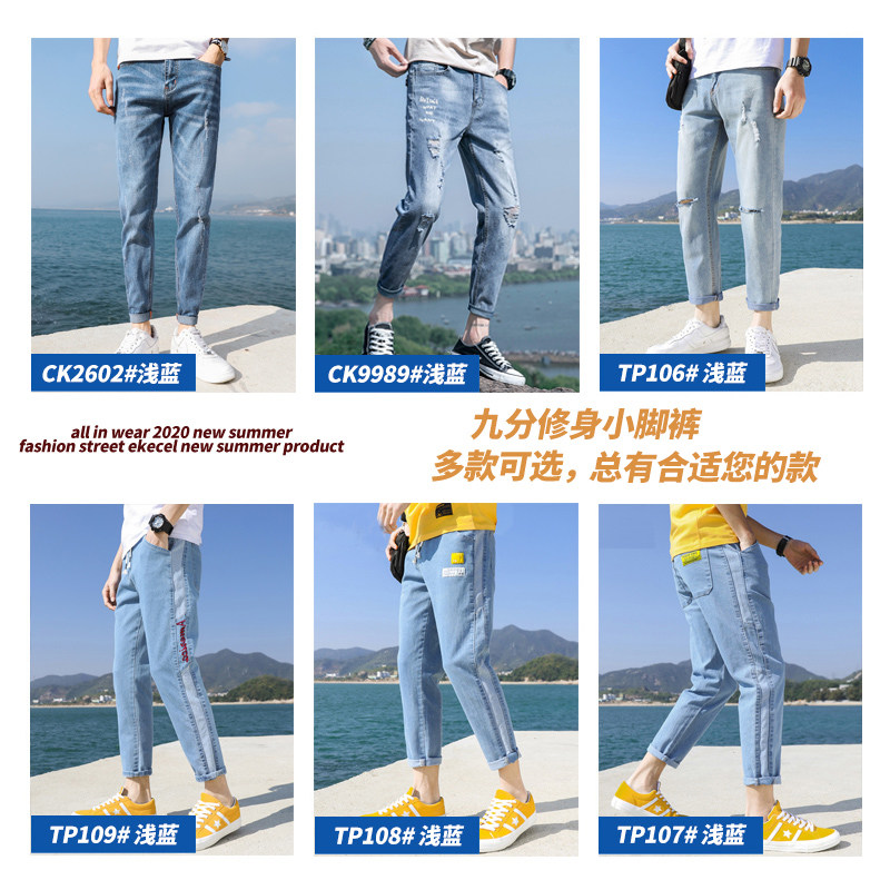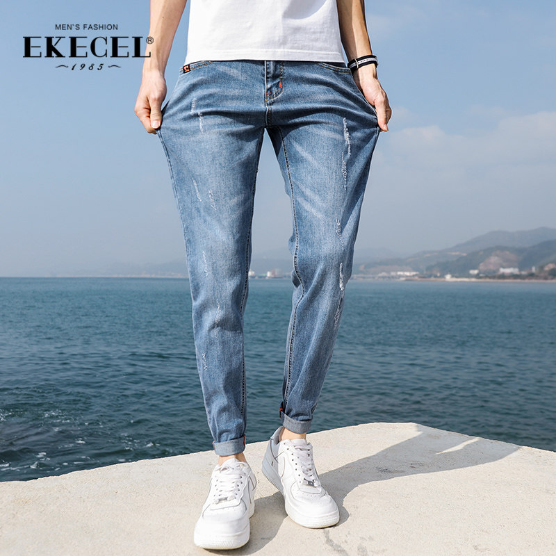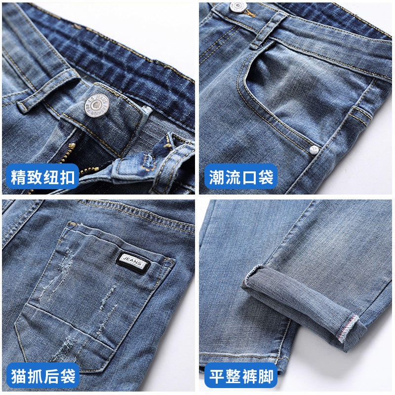 Men's jeans summer thin slim small feet stretch tide Pai Gow long pants Korean version of the trend 2021 spring and autumn