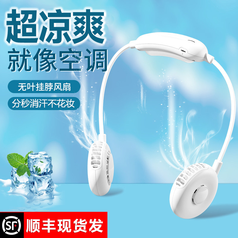 usb no leaf hanging neck fan mini hanging neck super silent rechargeable lazy person portable small folding small folding carry-on child student dormitory office large wind power table with small electric fan