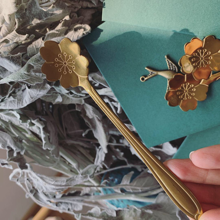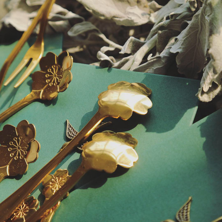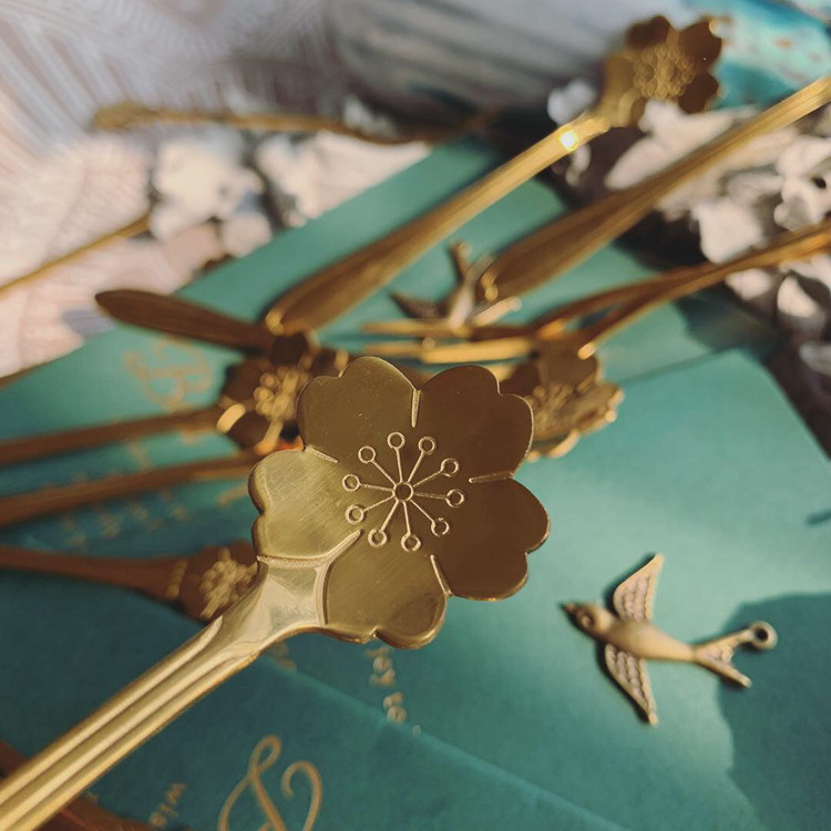 Good-looking creative high-end tableware cherry blossoms stainless steel exquisite spoon Fork mixing spoon ice cream spoon