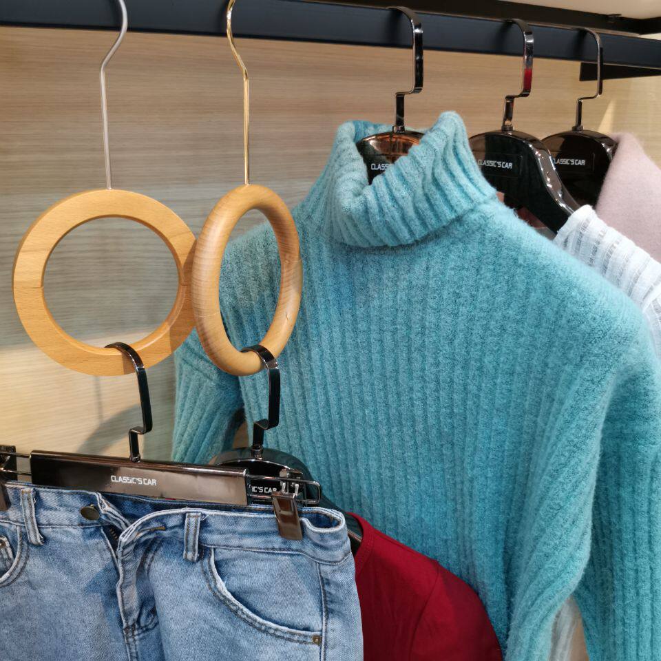 Solid wooden ring hook clothing shop jeans round wooden scarf frame can open the clothes frame S hook creative