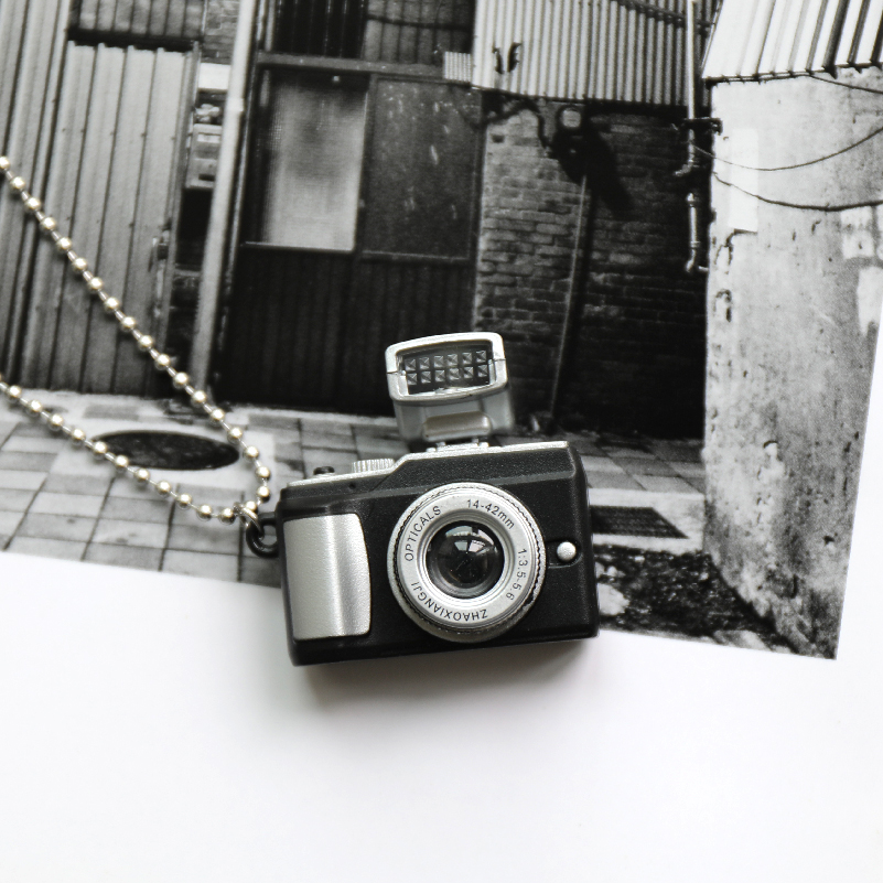 KANSAI self-made Japanese hip-hop flash retro camera SLR necklace soil cool bunny pendant sweater chain