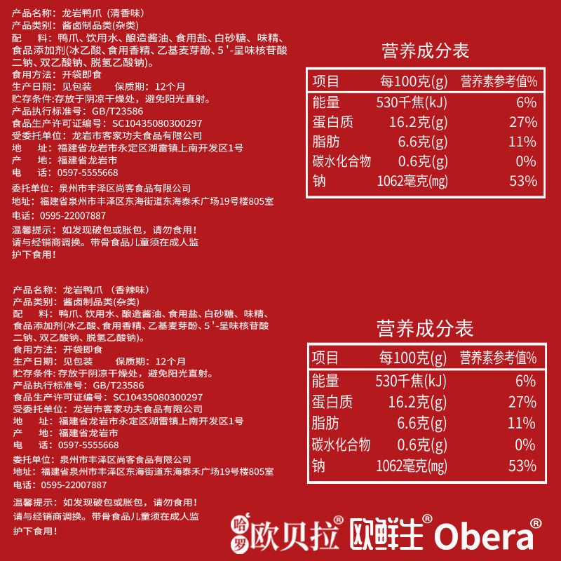 Longyan duck claw snack packaging Vacuum bag bubble duck paw braised Fujian specialty snack snack food pickled pepper