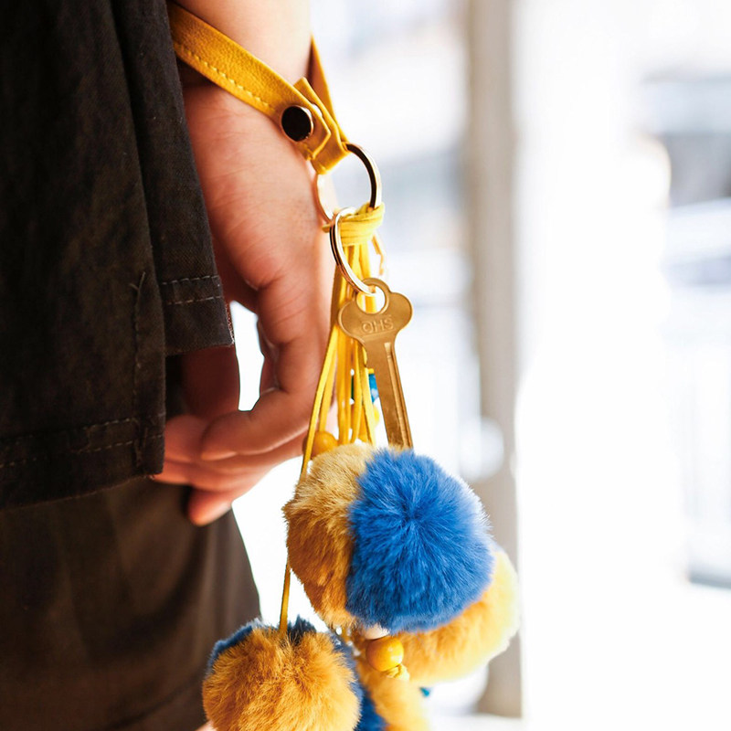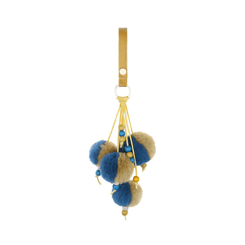 Wrist keychain female original 2020 leather snap key bracelet Korean version color wood bead hair ball bag pendant