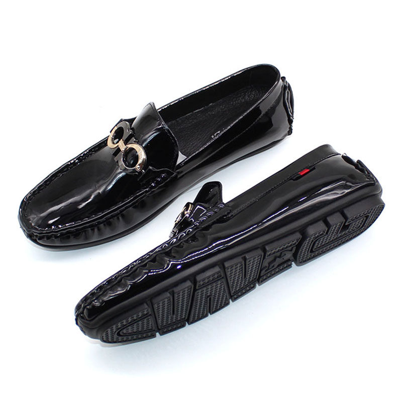 2022 Spring new trends Bright Leather Bean shoes Men's fashion genuine leather casual shoes 100 hitch a foot pedal Lefu Shoe Men
