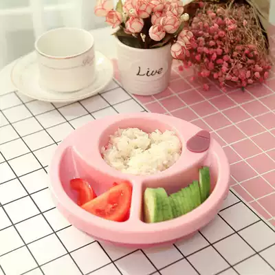 babyalan Baby meal plate Baby children tableware Non-food straw bowl grid silicone suction cup type learning to eat set