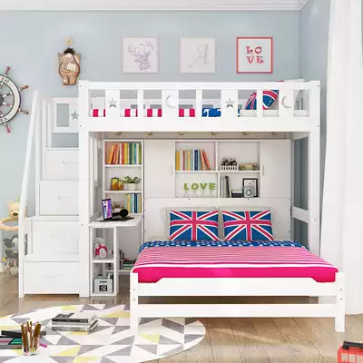Interlaced mother bed children's solid wood high and low double layer with desk multifunctional combination small apartment dislocation bed