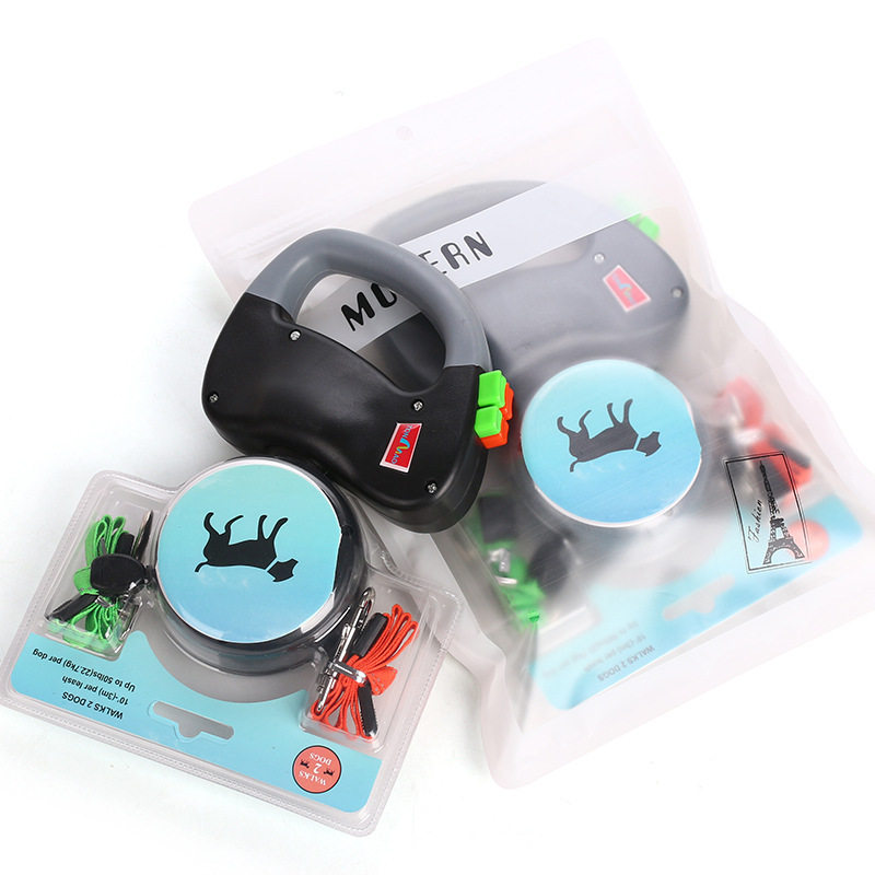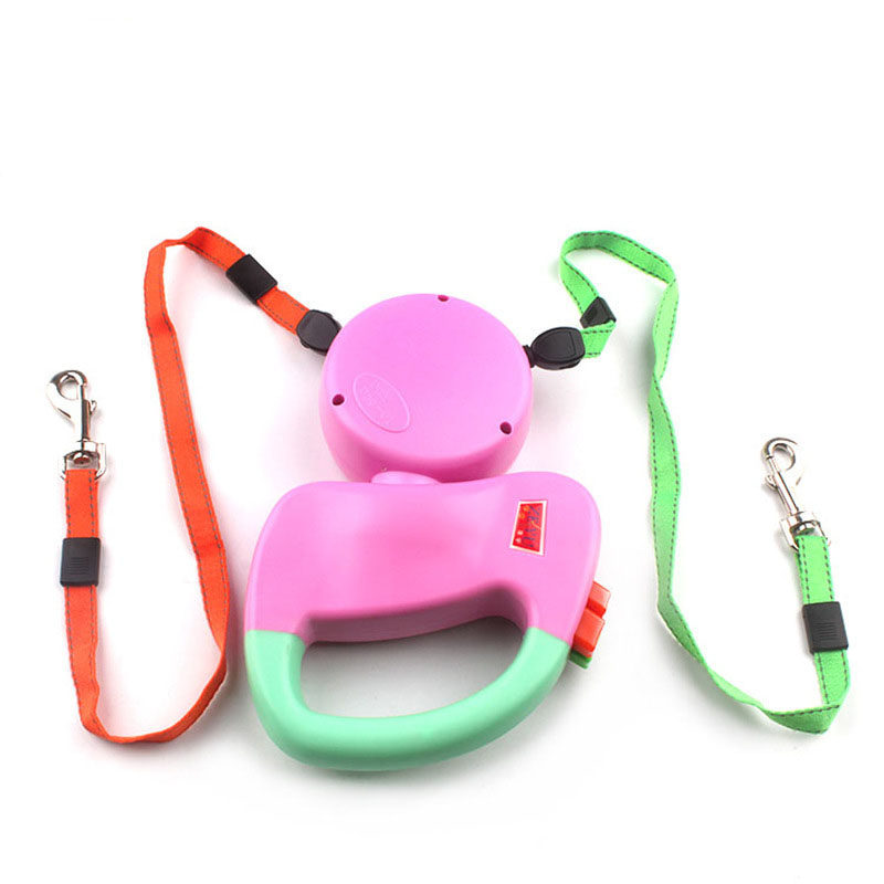 Two dog traction rope one drag two two dogs dog cat automatically retractable adjustable size of general rabbit small