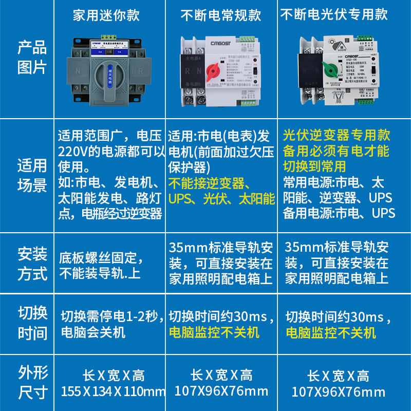 Home Photovoltaic Solar Dual Power Automatic Transfer Switch inverter Switch Stop Power Generation uninterrupted 2P100A