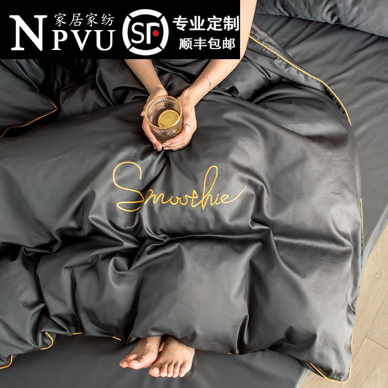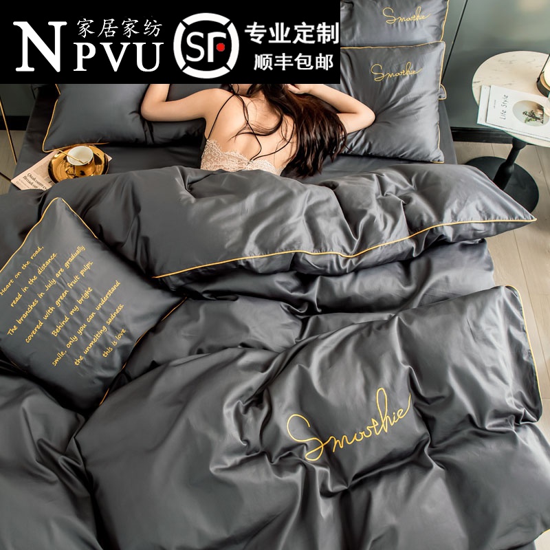 Four sets of full cotton pure cotton ins Nordic wind minimalist sheets quilts covered with cover spring summer season nude sleeping bed supplies Three sets