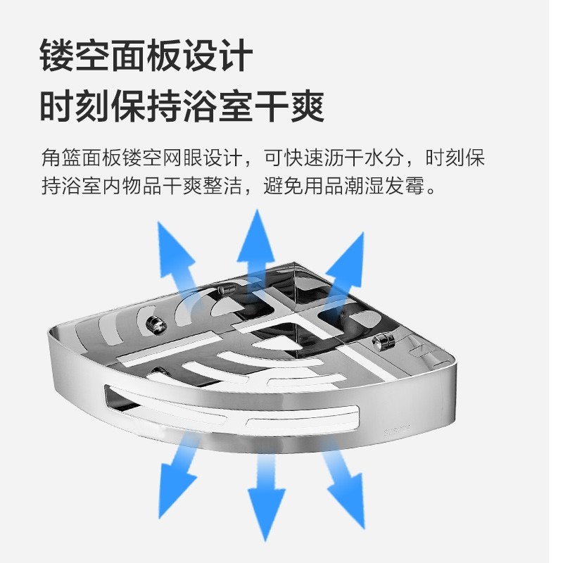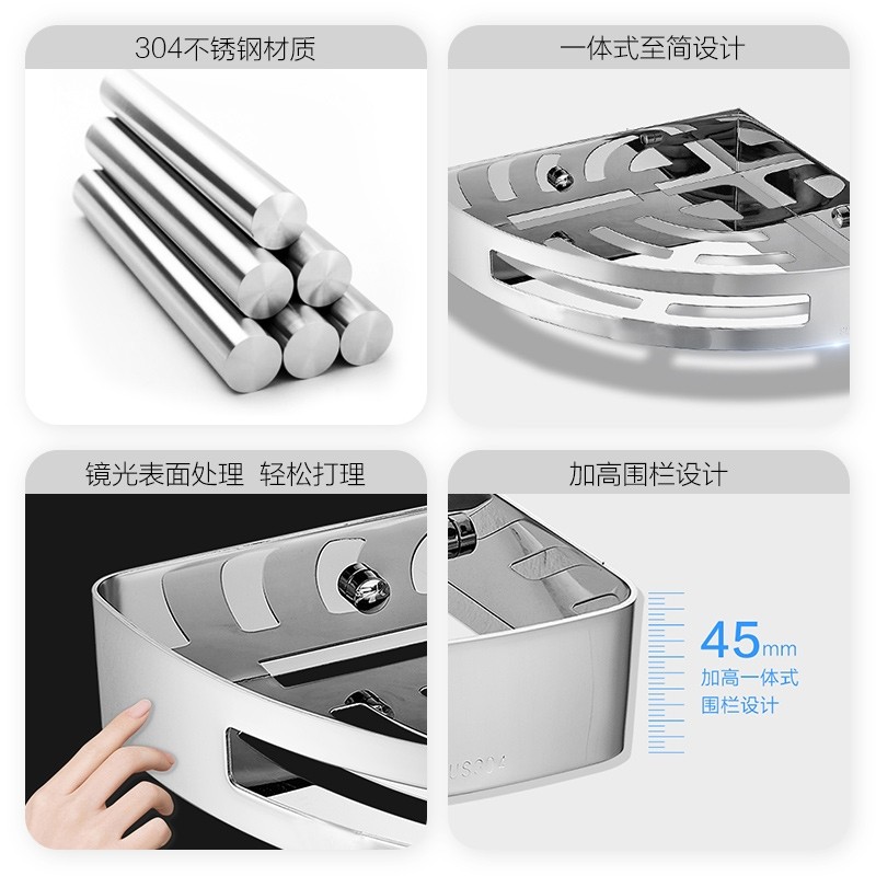 Jiumu 304 stainless steel shelf toilet bathroom bath rack Powder room storage shelf Triangle basket corner rack corner blue