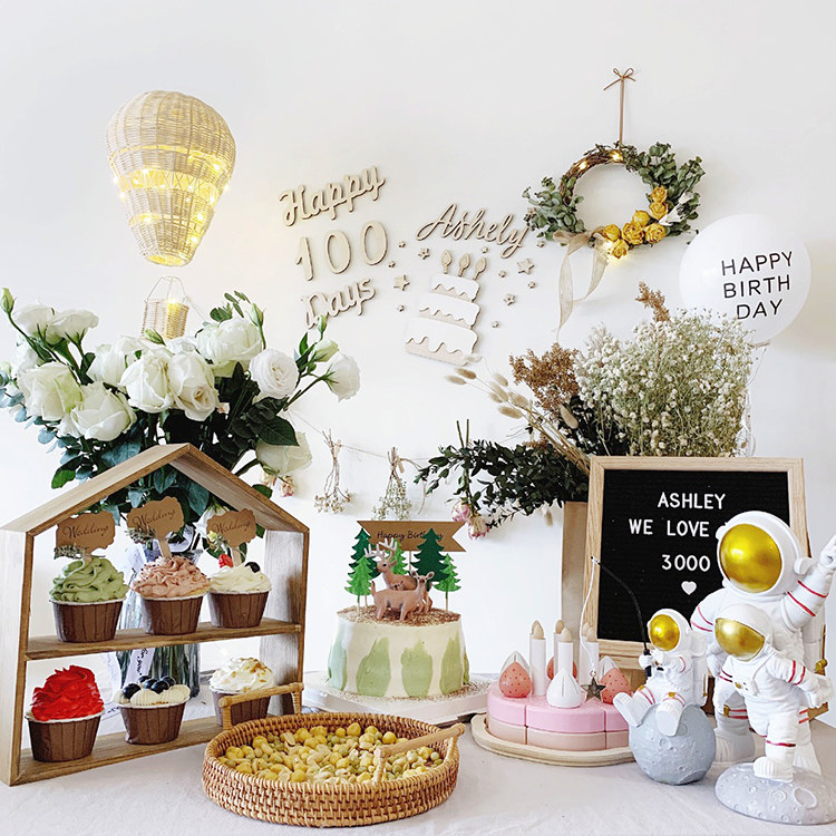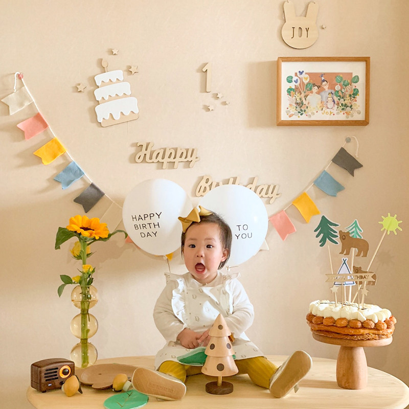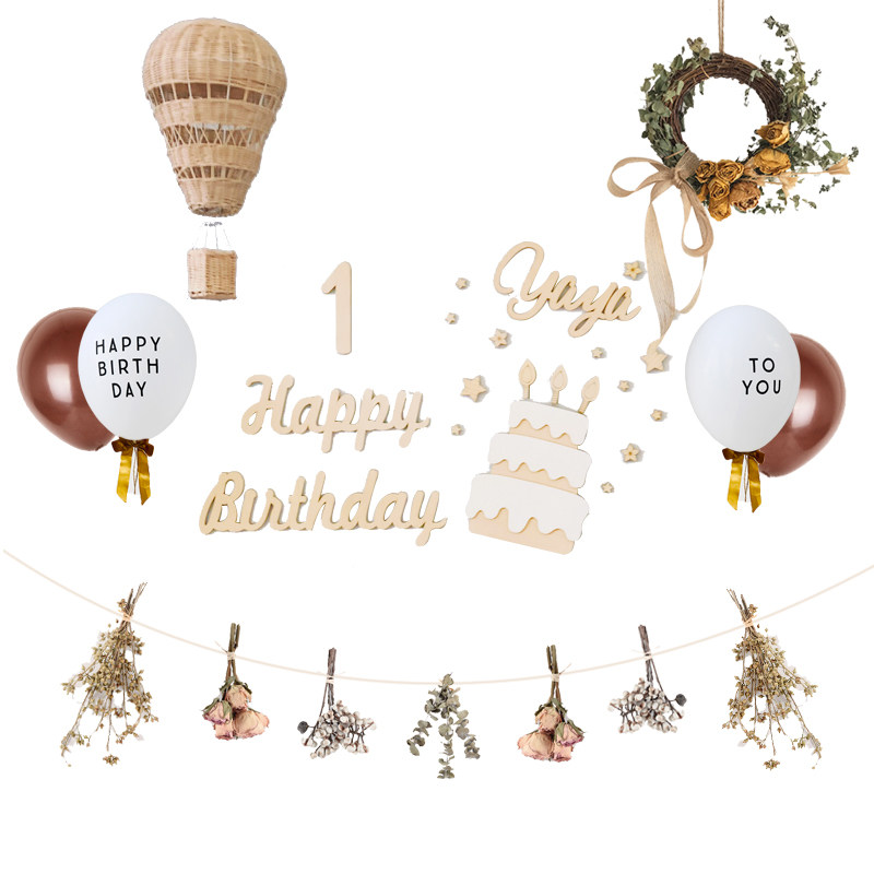 Birthday balloon combination Ribbon hemp rope wooden English birthday brand wooden cake Star wooden number 1 wooden number 2 wooden number 3 wooden number 4-9 wooden name custom dry flower and leaf combination wooden