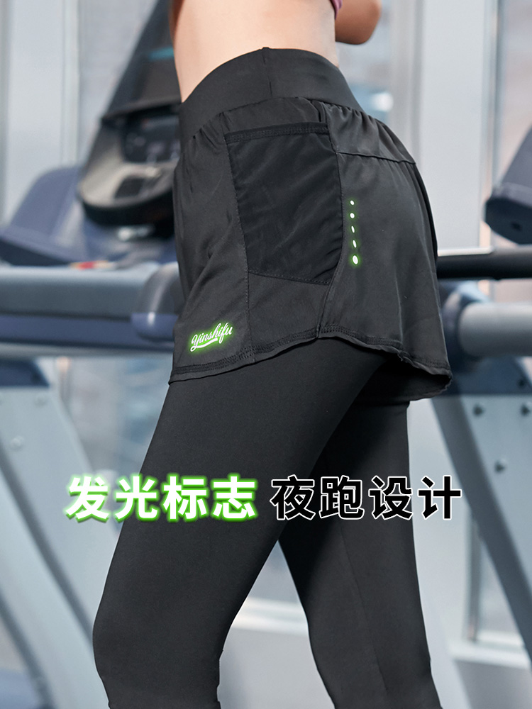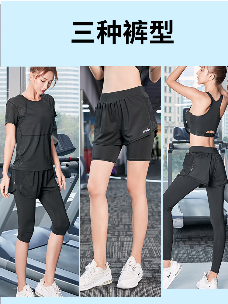 Large size sports pants women's trousers Fat MM training yoga summer three-point pants High waist running fitness fake two pieces