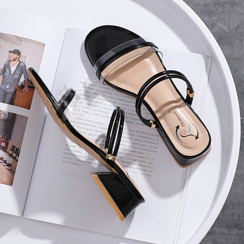 Two wearing sandals 2022 new female summer medium heel with rough heel fairy wind with cool drag black apricot small size women's shoes