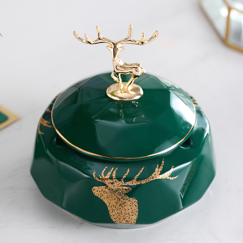 American Light Luxury Living Room New Chinese Ceramic Ashtray with Light Ashtray Line Creative Trend European Swing