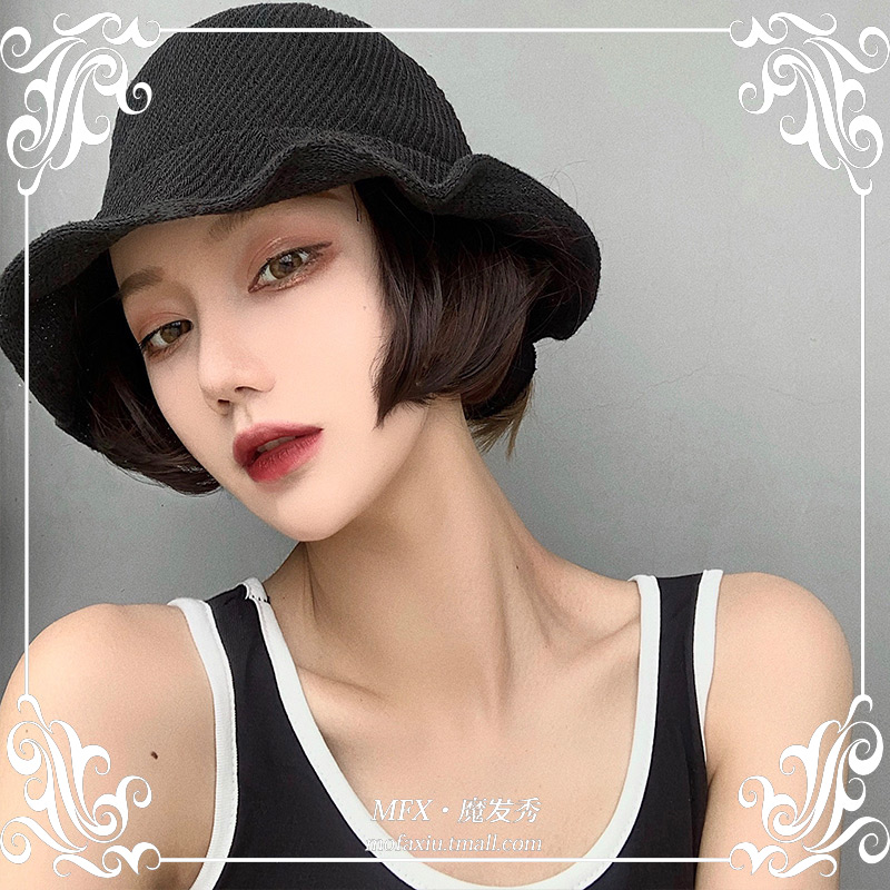 Wig hat Female short hair net red bobble head hat with wig one female summer fashion short hair full head cover type