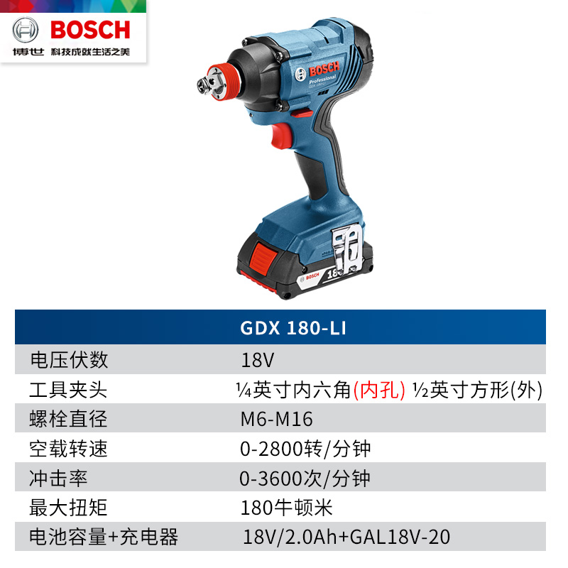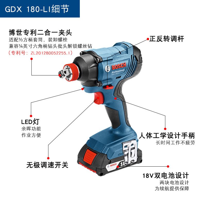 Bosch rechargeable lithium power 18V electric shock sleeve wrench driver machine two-in-one GDX180-LI Dual-purpose
