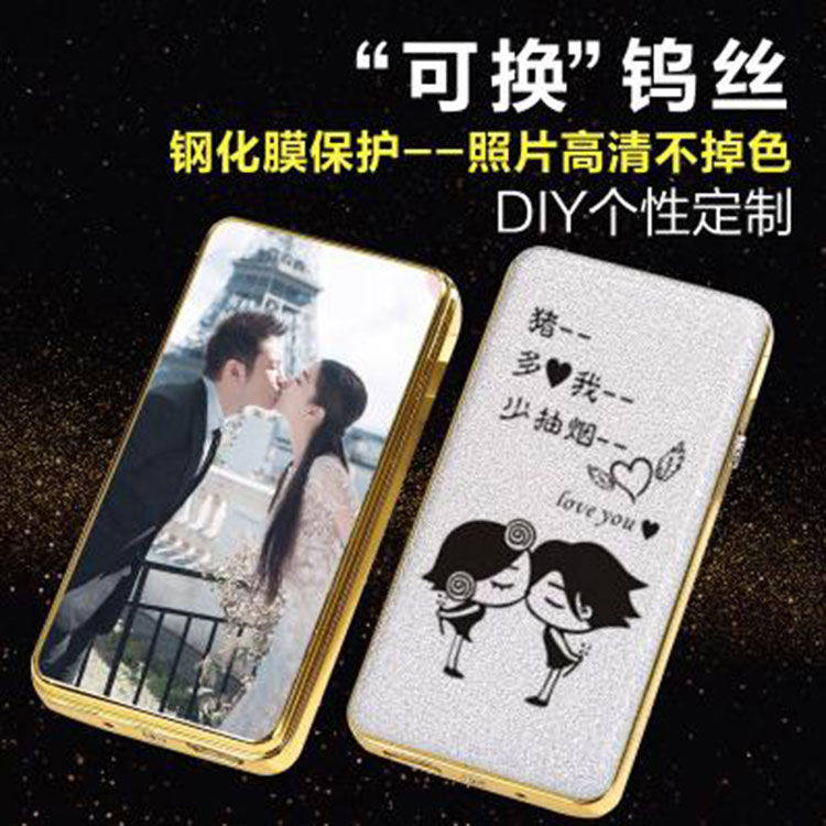 Personality Customized Photos Lettering Lighter Charging Ultra Slim Windproof Creative Usb Electronic Cigarette Lighter Birthday Present