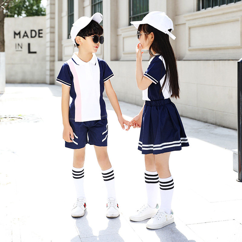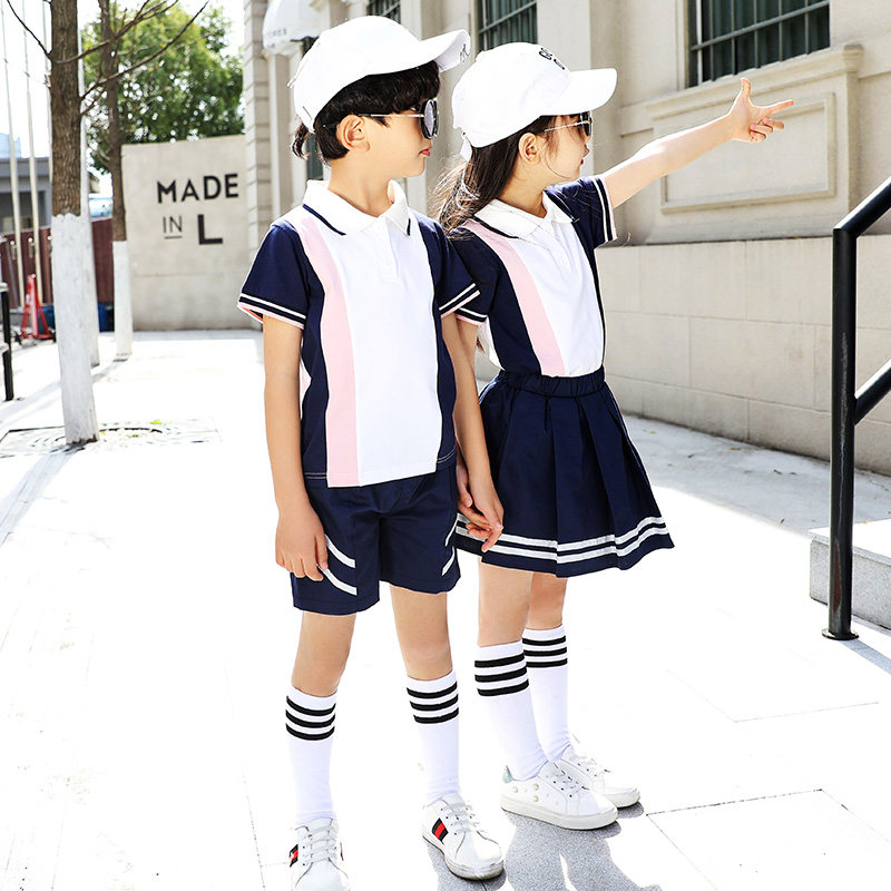 School uniform set primary school students summer kindergarten Garden dress summer children short sleeve dress sportswear cotton customization