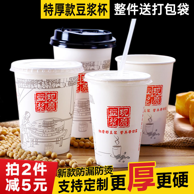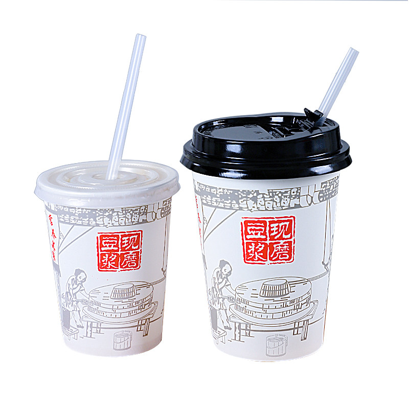 Disposable Soymilk cup Freshly ground thickened straw with lid Breakfast soymilk cup 1000 commercial portable take-away packaging