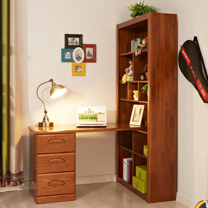 Light Furniture Solid Wood Desk Teen Desk North American Red Oak Wood 8171 Desk Bookshelf Combo