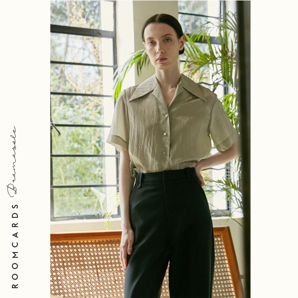 ROOMCARDS independent designer brand mint green pointed collar loose short-sleeved shirt Hawaiian shirt