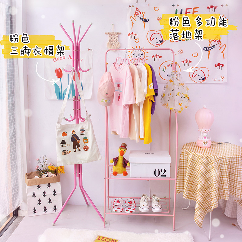 Multifunctional floor stand-white multifunctional floor stand-pink pink three-legted clothes hat rack white three-legted cap rack