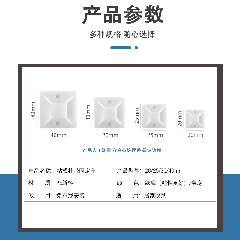 Self-adhesive cable tie buckle fixed seat self-adhesive punch-free suction cup positioning piece wall sticker wire 100 packs