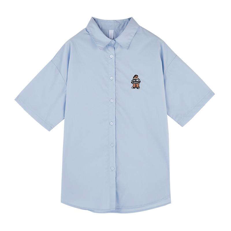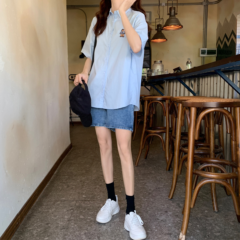 2021 summer new short-sleeved wild polo shirt female design niche blue shirt student thin top