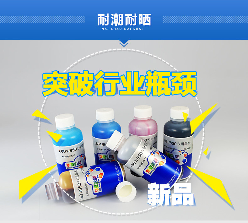 Huaxia colorful magic wave resistant sunscreen ink compatible with EPSON Inprintable Machine original ink L801L810L850