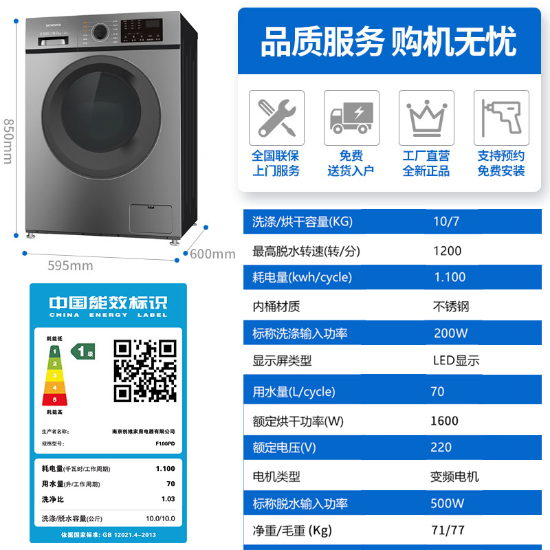 Skyworth F100PD Full Automatic Dryer Washing Machine Household Washing Machine with Washing and Drying in one frequency conversion high temperature washing