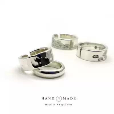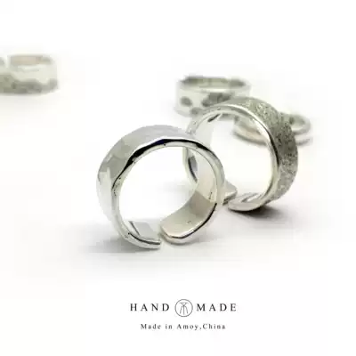 UNEND brand silversmith Ahao new traditional handmade pure silver ring flat hammer eye pattern wave light ring ring