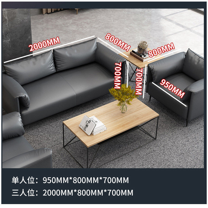 Leather Craft Sofa Nordic Office Sofa Tea Table Combo guests reception room Business Bull Leather Brief Modern Sofas
